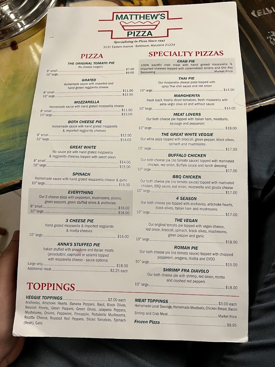 The real highlight is the pizza, where customers rave about the perfect crust, rich cheese, and fresh toppings. Specialties such as the 3 Cheese and the coveted crab pizza showcase the culinary pride of Matthew's Pizzeria. Be prepared to wait, as the high demand reflects the quality and nostalgia that keeps patrons coming back for more. Treat yourself to an unforgettable dining experience here!
